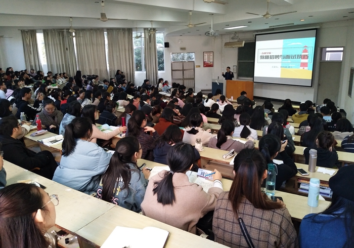 11月24日下午,由校学生处(就业服务中心)主办的“助力就业 成就未来”就业指导系列讲座在临海校区举行,浙江师范大学法政学院博士、副教授周功满应邀作“教师招聘与面试技巧”辅导讲座。学生处副处长马斌主持讲座。