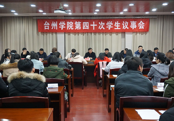 12月12日晚上和12月13日下午,电玩城游戏大厅app下载第40次、第41次学生议事会分别在临海校区和椒江校区举行。校党委副书记金先龙和相关职能部门、二级学院负责人出席,学工部副部长马斌主持会议。议事会常任代表、非常任代表100多人参与民主议事。