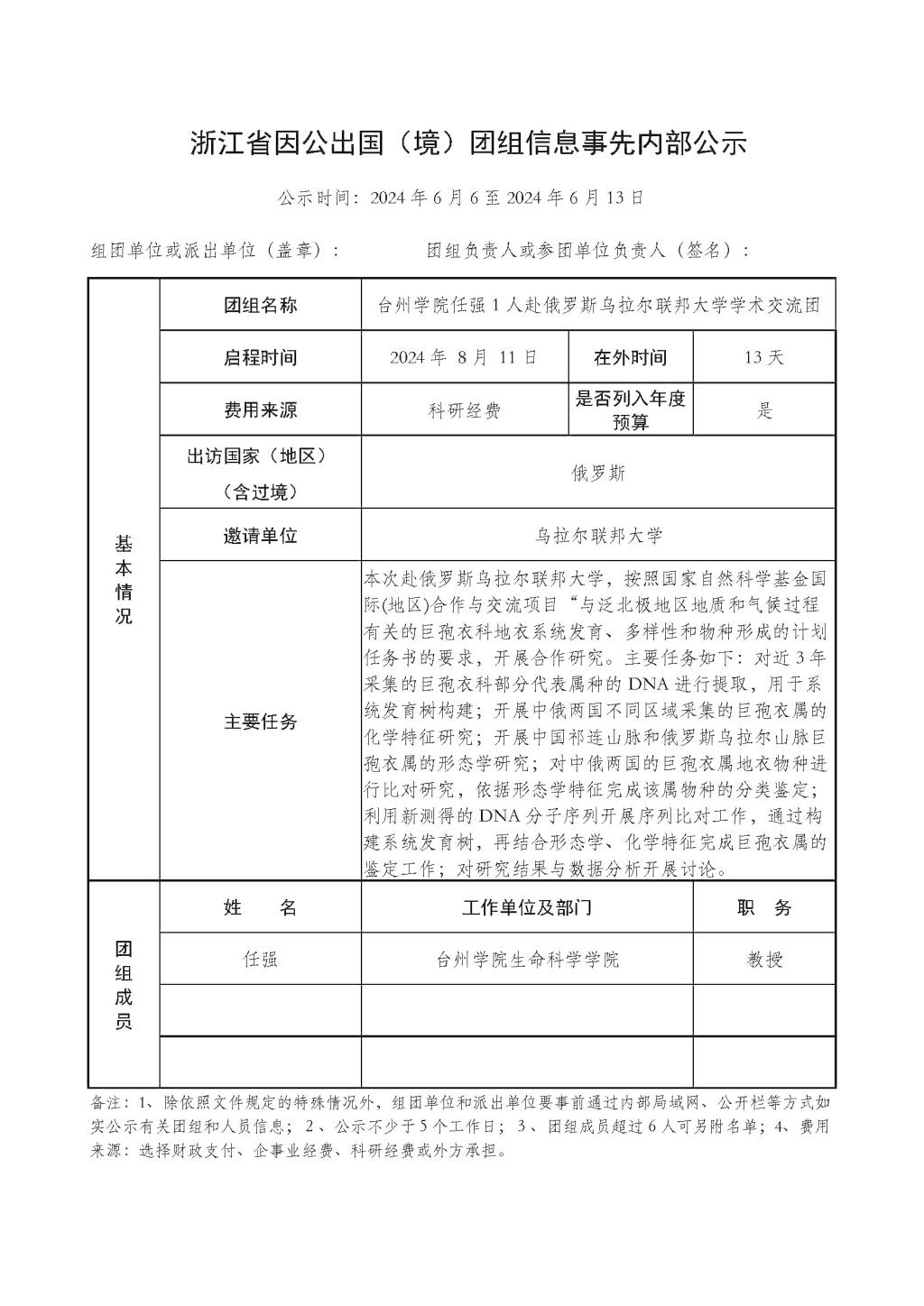 以上事项,在公示期限内,如有异议,可通过信函、电话等方式向国际交流与合作处反映。反映时,请告知真实姓名与联系方式,以便及时反馈。国际交流与合作处联系电话:88665785,电子邮箱:wsb@tzc.edu.cn。