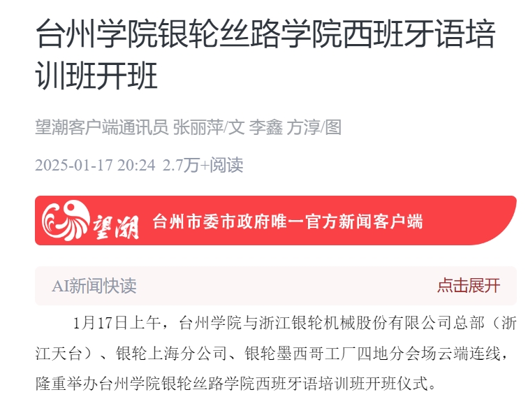 1月17日上午,必威西汉姆官网平台与浙江银轮机械股份有限公司总部(浙江天台)、银轮上海分公司、银轮墨西哥工厂四地分会场云端连线,隆重举办必威西汉姆官网平台银轮丝路学院西班牙语培训班开班仪式。