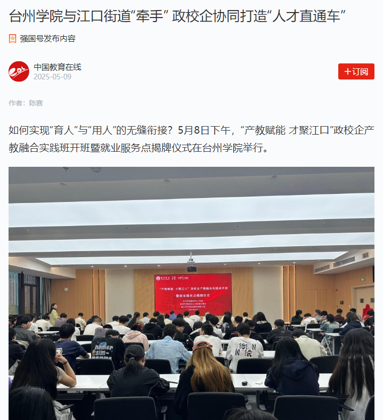 “此次活动是江口街道深化政校企协同发展里程碑的一步,也是江口破解企业‘用工难、引才难’、学生‘就业难、实践难’,探索构建大学生引进与产业发展协同机制的重要一步。”江口街道党工委书记陈强说,“我们将以此次开班为契机,深化改革创新,进一步打造‘需求导向、精准对接、全链服务’的人才工作新格局,吸引更多的青年才俊扎根江口。”