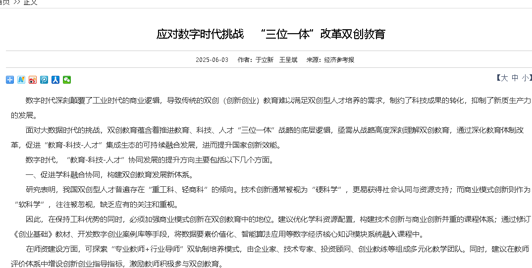 因此,在保持工科优势的同时,必须加强商业模式创新在双创教育中的地位。建议优化学科资源配置,构建技术创新与商业创新并重的课程体系;通过修订《创业基础》教材、开发数字创业案例库等手段,将数据要素价值化、智能算法应用等数字经济核心知识模块系统融入课程中。