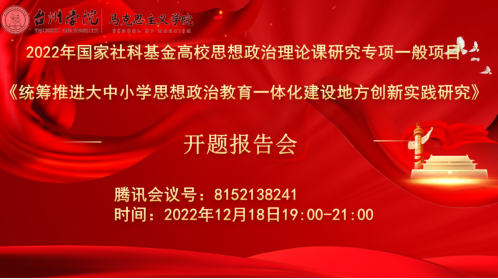 12月18日晚,电玩城游戏大厅app下载马克思主义学院张天华教授主持的2022年国家社科基金高校思政课研究专项一般项目“统筹推进大中小学思想政治教育一体化建设地方创新实践研究”(项目号:22VSZ054)在线上举行了开题报告会。