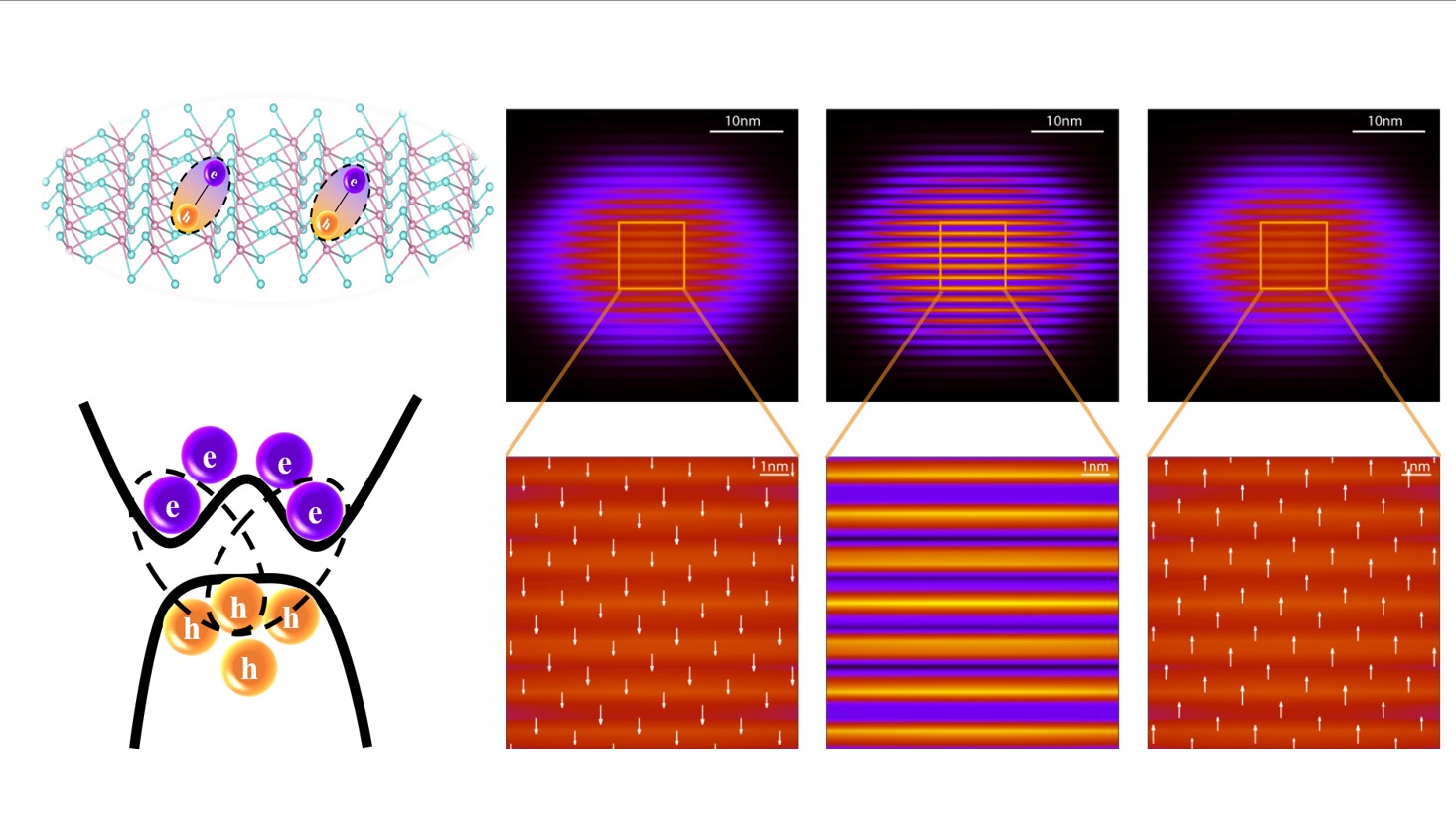 拓扑激子绝缘体基态(左)与拓扑激子密度波(右)